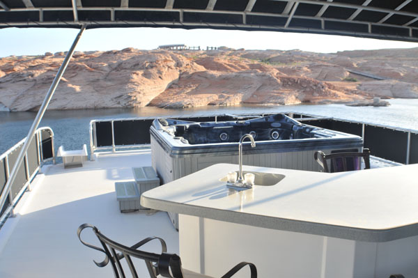 The galley consists of Kenmore "Elite" stainless appliances...side-by-side refrigerator, dishwasher, microwave oven, smooth top range, washer and dryer, and beautiful Custom Maple Cabinets. The upper deck includes a party top, wet bar with sink, refrigerator, and water slide. This houseboat is fully loaded!!! "AS GOOD AS IT GETS" is in a slip at Antelope Point Marina located on LAKE POWELL.